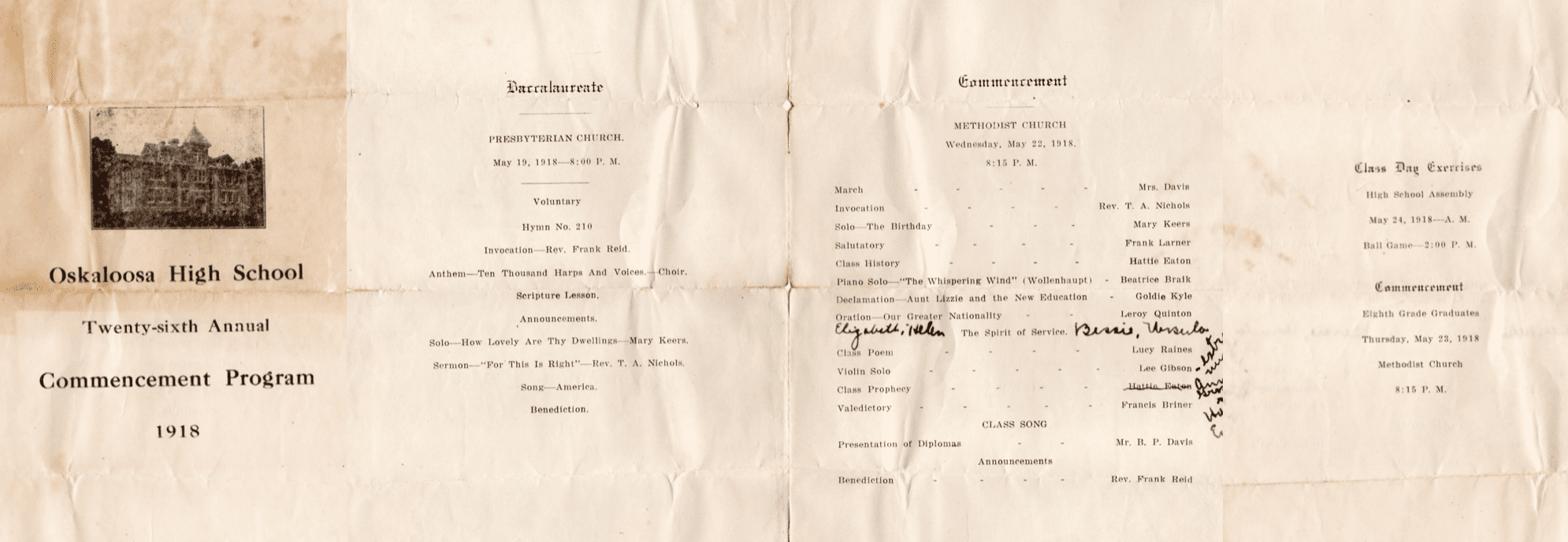 Ursula’s Documents Education & Teaching Career “My First School Attendance”Ursula Monthly Report 1906Ursula Monthly Report 2 1906Ursula’s Elementary School Diploma for Lowman School in Topeka, KSUrsula’s Reference LetterNormal Training Exam Results PG2Normal Training Exam ResultsUrsula’s Commencement CalendarUrsula’s Commencement AnnouncementUrsula Name Card for CommencementUrsula’s 1918 Oskaloosa High School Commencement ProgramNewspaper Clippings for the OHS CommencementUrsula’s Normal Training Teacher’s Certificate by the State of KansasUrsula’s Normal School Certificate of RegistrationUrsula’s Teacher’s County Certificate1919 Teacher’s Contract for Ursula Ellison1918 Teacher’s Contract for Ursula EllisonJefferson County, KS Roster of Teachers 1919-1920 – Ursula ZinnGarton School 1919Sale of Mt. Hope School by Ursula Zinn Personal Records Ursula’s Birth CertificateEverett & Ursula’s Marriage license postingUrsula’s engagement announcementEverett & Ursula’s Wedding Announcement in the Grantville GleaningsEverett & Ursula’s Wedding ReceptionBaptism Certificate of Ursula ZinnPerry, Kansas Christian ChurchDeath Certificate of Ursula ZinnMemorial of Ursula ZinnObituary of Ursula Zinn